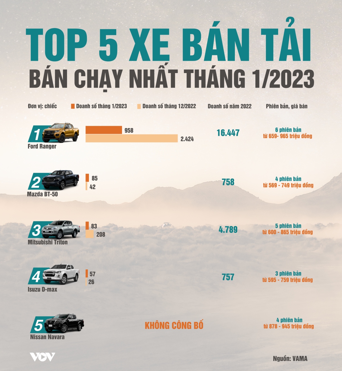 14/02/2023 15:30Xe bán tải nào được người Việt mua nhiều nhất tháng đầu năm 2023?