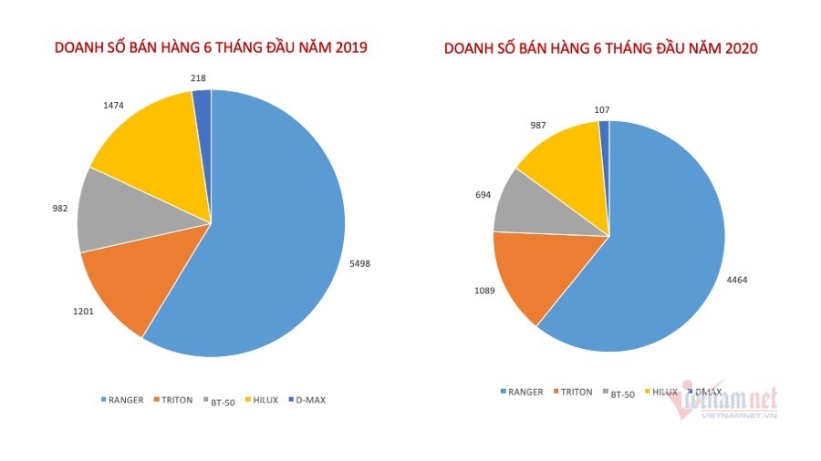Tuy vậy, so với 6 tháng đầu năm 2019 (5.498 xe), mẫu xe được mệnh danh là “Vua bán tải” này sụt giảm gần 19% doanh số.