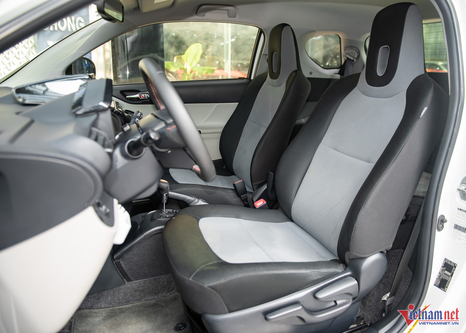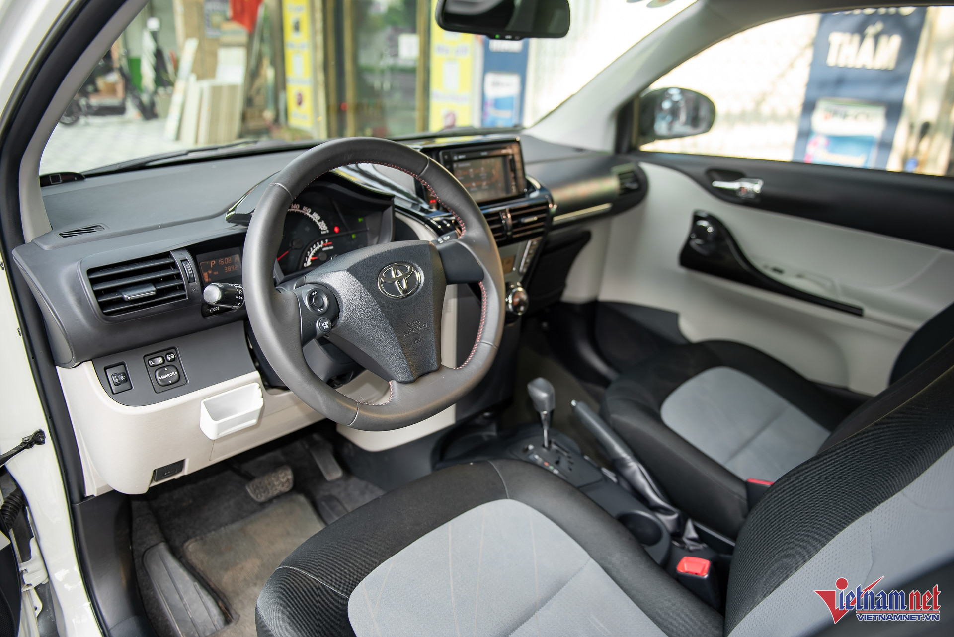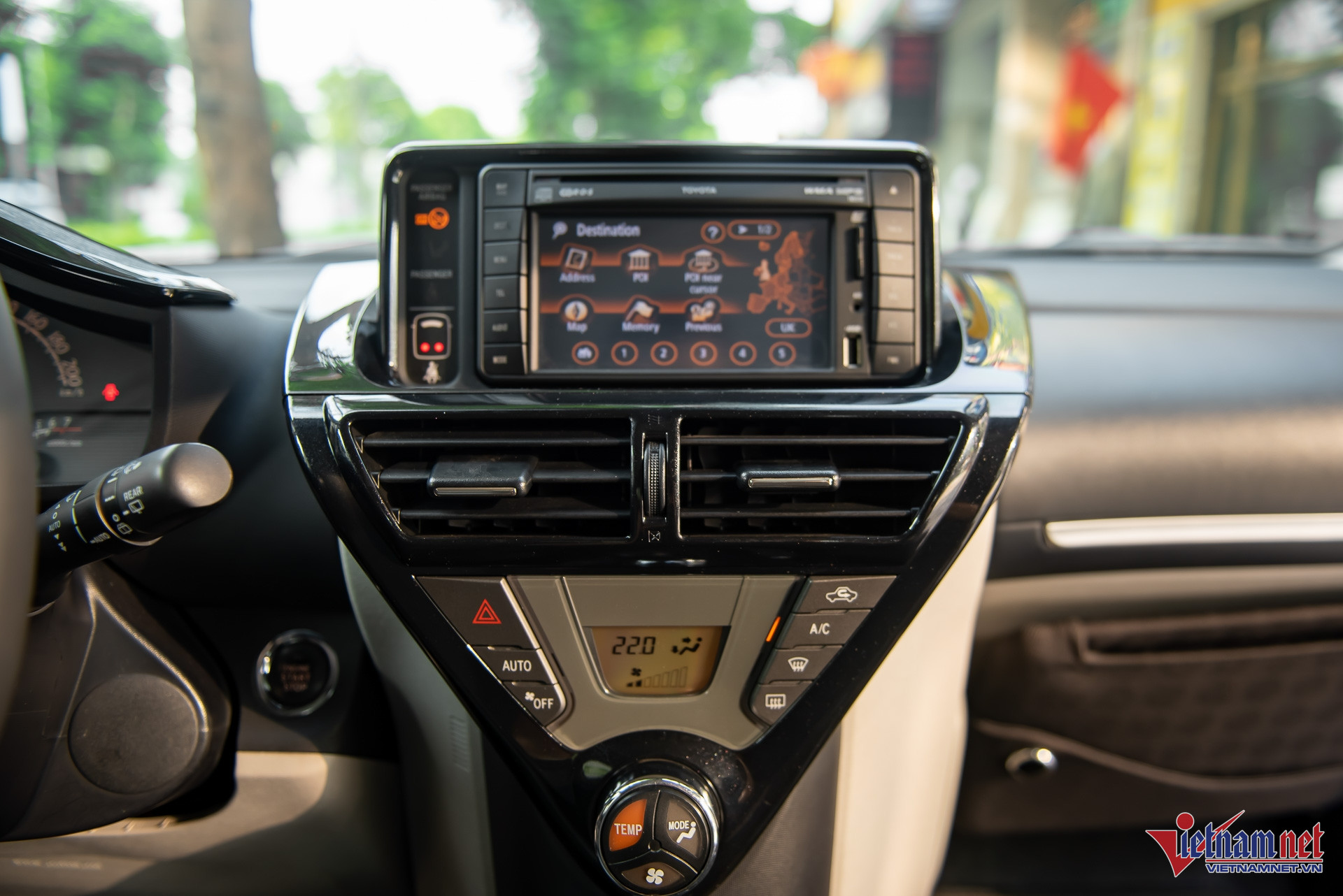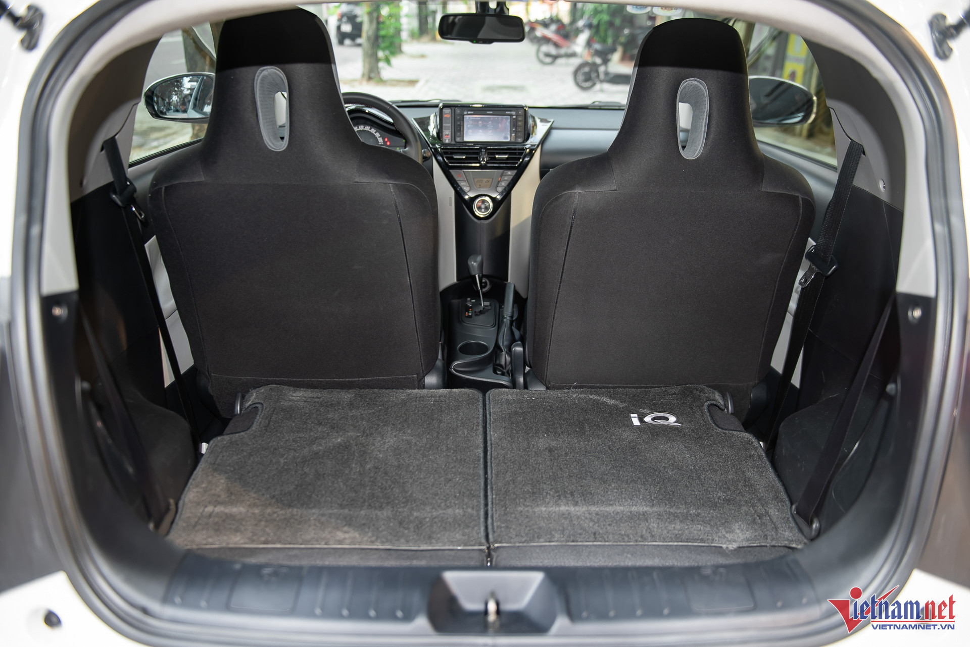 Khoang nội thất của Toyota iQ không được đánh giá cao do tiện nghi chỉ ở mức đủ dùng, thiết kế có phần “già nua” với nhiều nút bấm vật lý. Điểm cộng cho mẫu xe này là đề nổ bằng nút bấm - một trang bị ít thấy trên các mẫu xe Toyota ở nước ta từ 11 năm trước. Đồng hồ sau vô-lăng dạng cơ, đi kèm màn hình giải trí trung tâm với kích thước chỉ 5,8 inch.