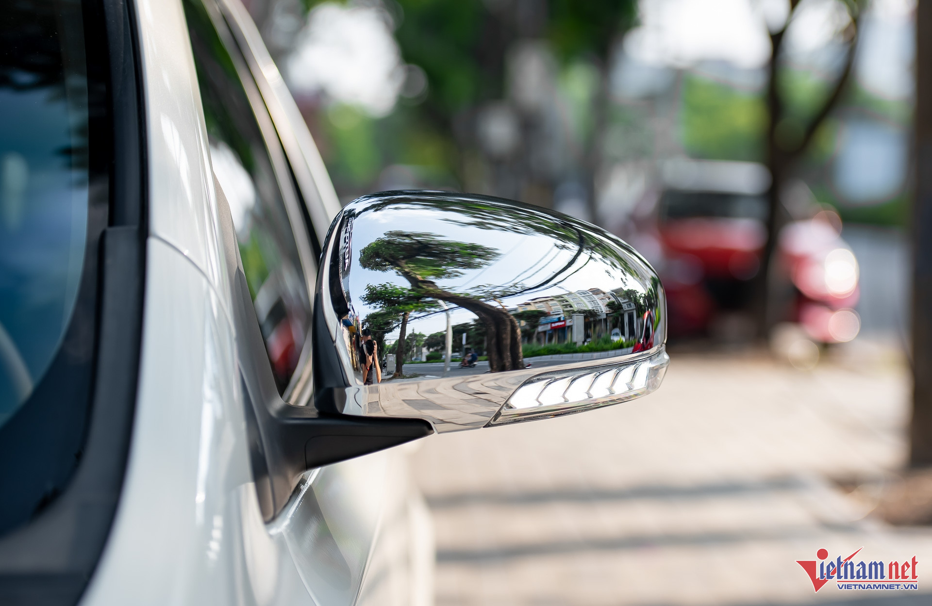 Sau 7 năm sử dụng, nhìn chung ngoại thất xe còn khá mới. Nước sơn màu trắng nguyên bản vẫn được giữ nguyên nhưng không tránh khỏi các vết xước dăm. Bộ mâm xe là loại 5 chấu kép kích thước 16 inch. Ốp gương chiếu hậu mạ crôm nhằm tạo điểm nhấn hơn cho xe. Phần ốp đèn chưa có dấu hiệu mờ đục theo thời gian.