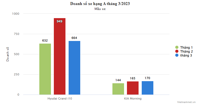 Doanh số xe hạng A giảm mạnh là do trong tháng 3, mẫu xe Hyundai Grand i10 bán khá chậm. KIA Morning có tăng trưởng nhưng không đáng kể.