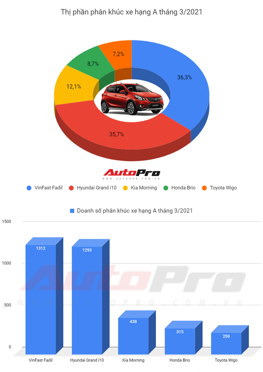 Kể từ đầu năm 2021 tới nay, đây là lần đầu tiên Hyundai Grand i10 có doanh số bám sát nút VinFast Fadil với khoảng cách chỉ là 19 xe. Các vị trí còn lại không có sự thay đổi nào với thứ tự lần lượt Kia Morning, Honda Brio và Toyota Wigo.