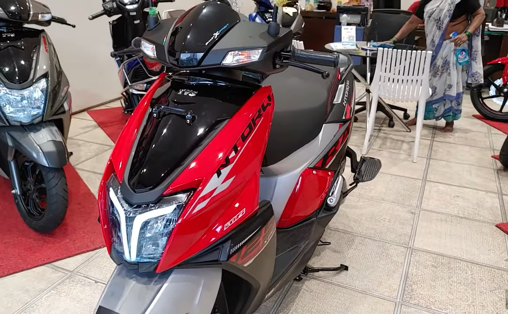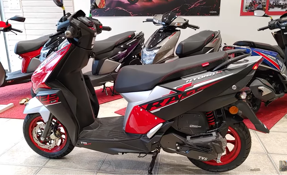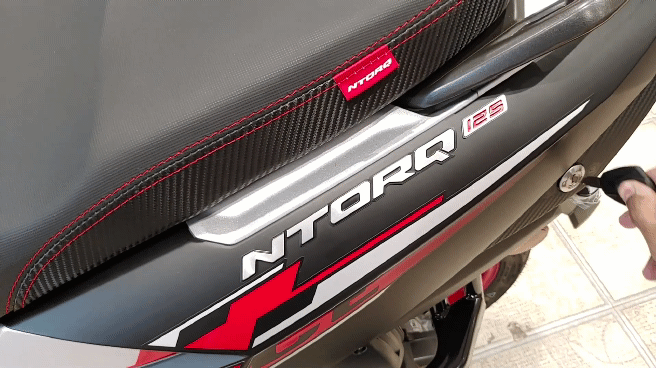 Điểm nổi bật nhất trên NTorq 125 Race XP chính là ở tem màu thể thao. Khác với các màu sắc đơn thuần như đen, trắng, đỏ trên các phiên bản hiện hành, NTorq 125 Race XP lại gây ấn tượng với tem màu thể thao cùng màu đỏ nổi bật. Các chi tiết như tấm chắn trước, la-zăng hợp kim và chỉ khâu trên yên xe cũng đều có màu đỏ. Một số chi tiết là màu trắng xen kẽ.