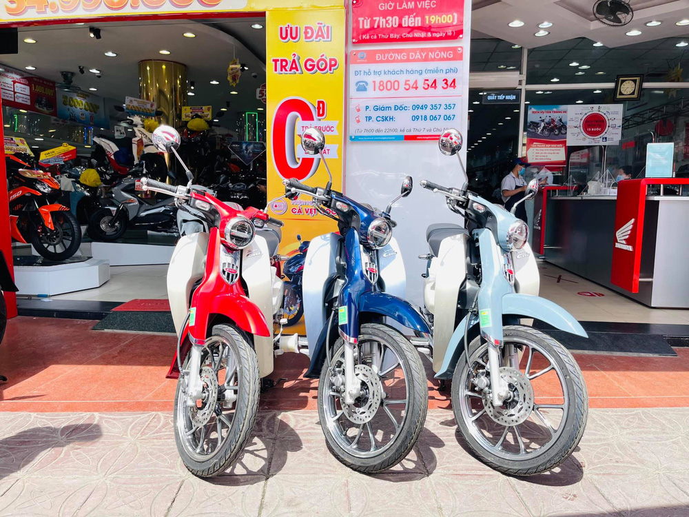 Trong đó, Honda Super Cub C125 2022 có 2 bản là bản tiêu chuẩn giá đề xuất 87 triệu đồng, gồm các màu Xanh Trắng (nhạt), Xanh Trắng (đậm), Đỏ Trắng; bản đặc biệt giá đề xuất 88 triệu đồng, duy nhất màu đen nhám.