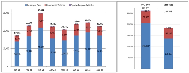Cùng với đó, thời gian qua, Chính phủ đã ban hành nhiều chính sách như gia hạn thời gian nộp thuế tiêu thụ đặc biệt, giảm 50% lệ phí trước bạ cho xe sản xuất, lắp ráp, hỗ trợ thị trường ô tô, nhờ đó mà thị trường ô tô những tháng cuối năm 2023 đặt nhiều ký vọng sẽ ấm lên.