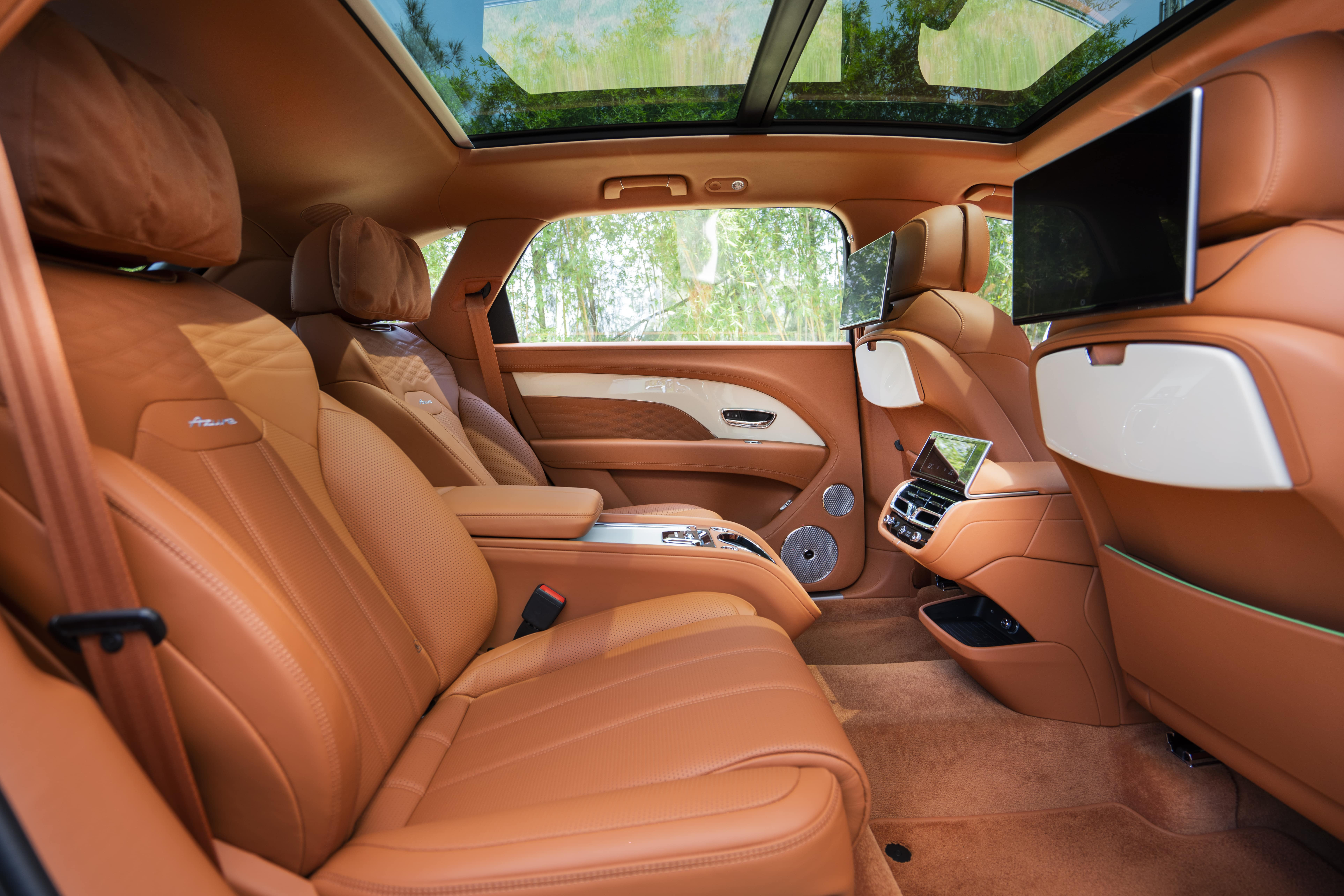 Sự đắt đỏ của phiên bản Azure nằm ở chỗ, ghế ngồi hàng ghế sau Bentley Airline Seat Specification sở hữu khả năng cảm biến nhiệt độ tự động đầu tiên trên thế giới và công nghệ điều chỉnh tư thế hiện đại bậc nhất. Cùng với đó là trang bị Bentley Diamond Illumination - hệ thống đèn trang trí nội thất thông qua lớp da chế tác thủ công lần đầu tiên được xuất hiện.