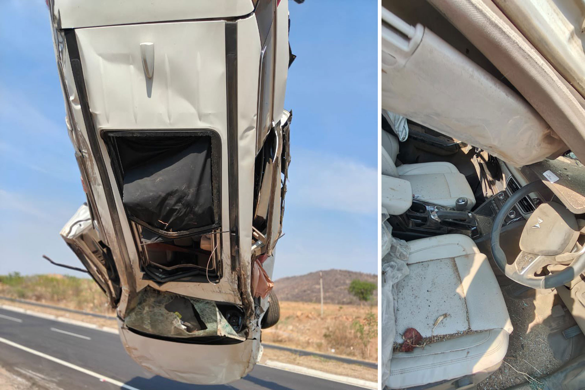 Chủ xe tên là Kiran kể, vào khoảng 3h15 sáng ngày 25 tháng 4, anh và gia đình gặp một vụ tai nạn trên đường gần Dhone, Andhra Pradesh, cách Kurnool khoảng 65 km. Dù đã lộn nhào tới 6 vòng và lật ngửa bụng nhưng túi khí bên phải và phía trước của chiếc xe SUV vẫn không bung.