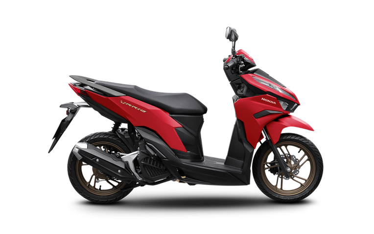 Tông màu đỏ nhám nổi bật của chiếc xe tay ga Vario 125 không chỉ đơn thuần là một lựa chọn màu sắc, mà còn là biểu tượng của sự cá tính và phong cách mạnh mẽ. Dòng chữ "VARIO" tông vàng được đúc nổi góc cạnh trên nền lớp sơn đỏ nhám bắt mắt, kết hợp hoàn hảo với thiết kế thể thao, mạnh mẽ của chiếc xe, tạo nên một tổng thể đầy ấn tượng.