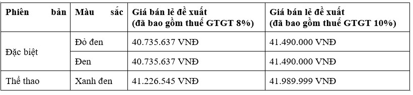Cụ thể giá bán lẻ đề xuất như sau: