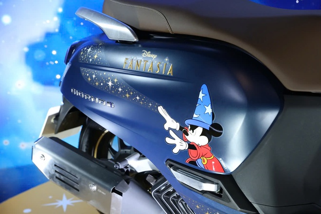 Logo kỷ niệm 85 năm Disney Fantasia và mâm màu vàng đồng, yên xe bọc da màu nâu, ốp sàn màu đỏ nổi bật, ốp ống xả thép không gỉ và logo H2C là các điểm nhấn đặc sắc của mẫu xe này. Xe vẫn được trang bị hộc chứa đồ có cổng sạc và hộc chứa dưới yên lớn, nắp bình xăng phía trước tiện lợi.