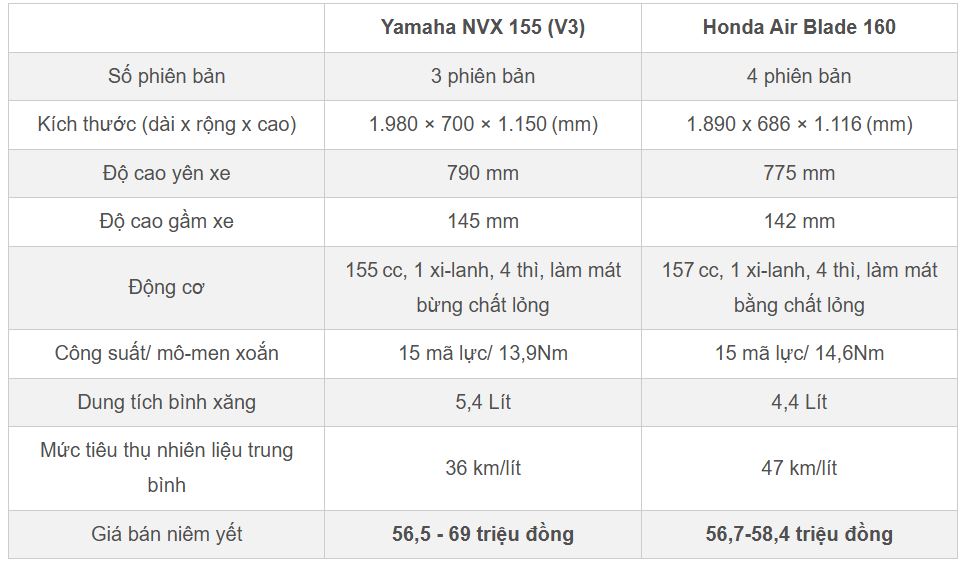 So sánh nhanh Yamaha NVX 155 2025 và Honda Air Blade 160