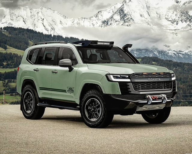 Trong khi sức nóng của Land Cruiser 2022 chưa có dấu hiệu thuyên giảm, ngày 29/6, một tài khoản mạng xã hội tên Hamid Davoodi, người được mệnh danh là bậc thầy pixel đã khiến những người yêu thích dòng xe này "nức lòng" khi đăng lên bức ảnh với tiêu đề “ý tưởng cho Toyota Land Cruiser TRD 2022”. Khoác trên mình lớp áo xanh rêu nhẹ nhàng nhưng không kém phần nổi bật, chiếc xe còn được tác giả thay đổi một số chi tiết như phần logo Land Cruiser vốn có ở phía trước, thiết kế mới cho đèn pha và trang bị thêm phụ kiện trên nóc xe.