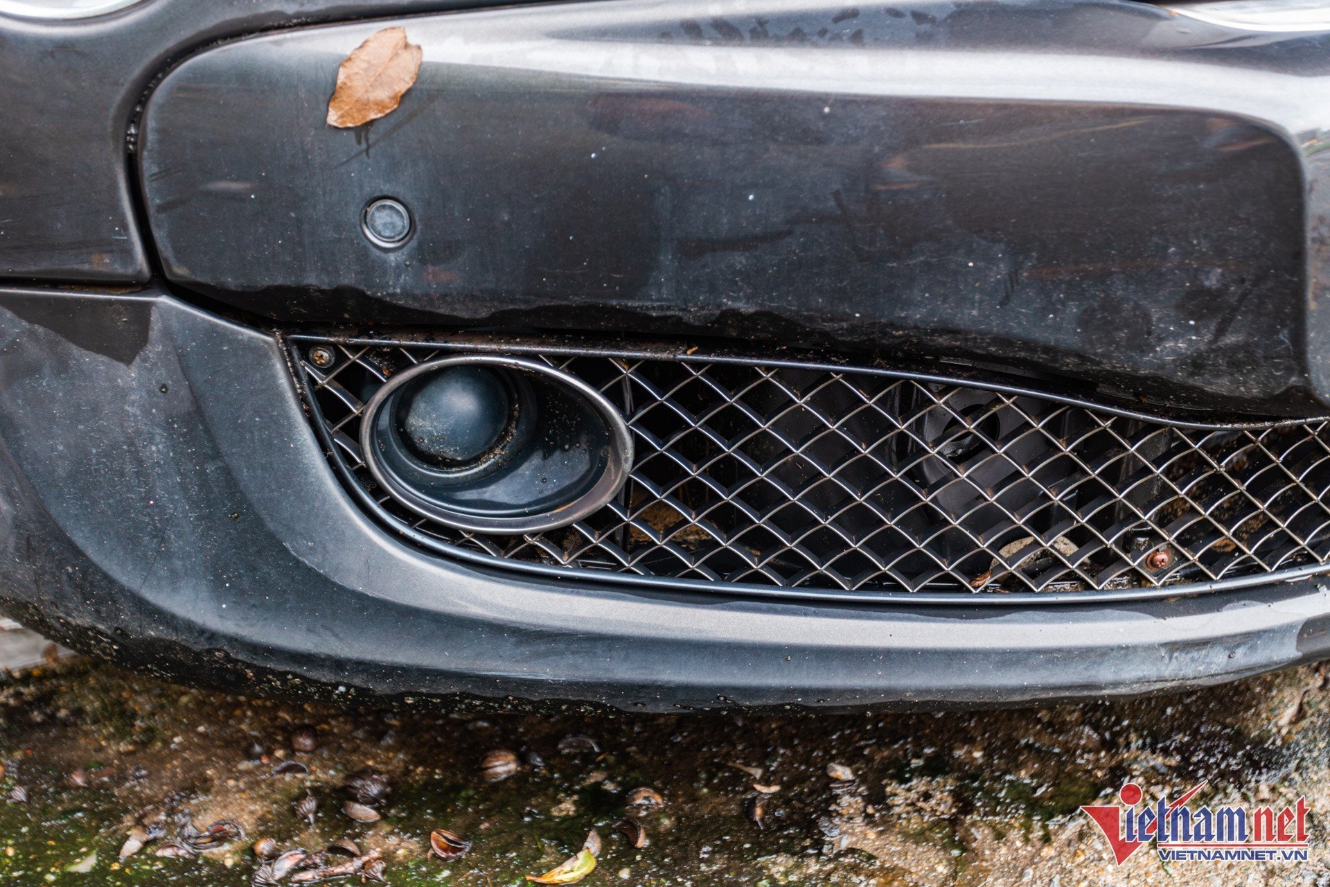 Các chi tiết mạ crôm ở cản trước và mặt ca-lăng không giữ được sự sáng bóng. Bên trong đã có côn trùng làm tổ. Logo Bentley còn nguyên vẹn, song miếng ốp bên trên đã mất.