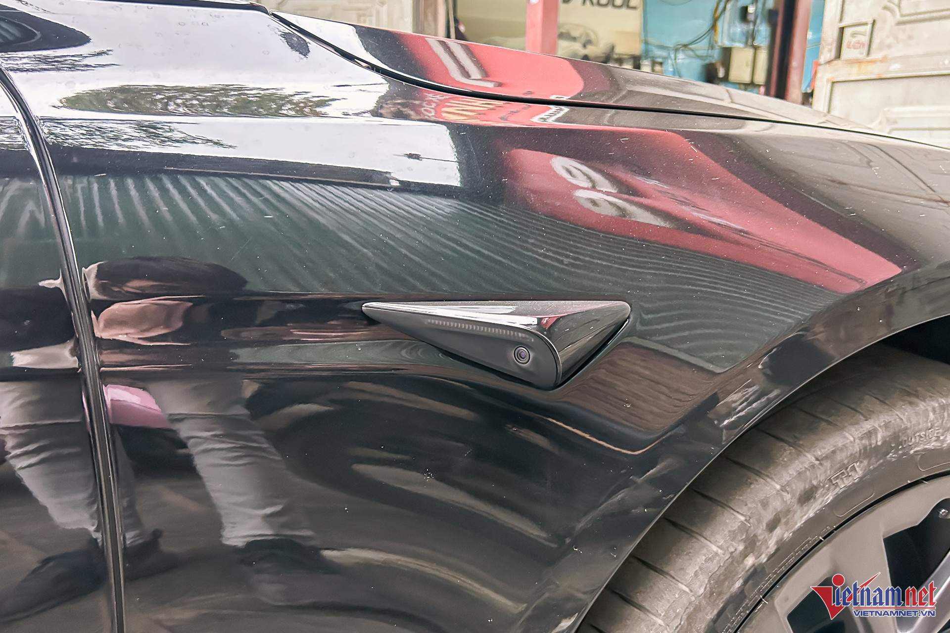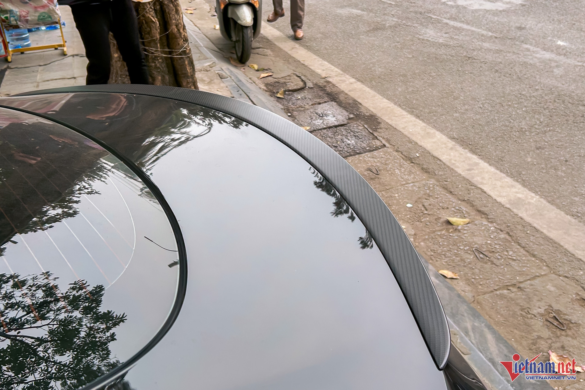 Khác với chiếc Tesla Model S Plaid màu đỏ còn lại của Phó Đức Nam (tức Mr Pips, người vừa bị công an quận Cầu Giấy khởi tố về hành vi lừa đảo), chiếc siêu sedan màu đen này có ít tùy chọn chi tiết bằng sợi carbon hơn, với duy nhất cánh lướt gió trên cửa khoang hành lý.