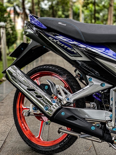 Anh Duy cho biết: “Mẫu xe côn tay Exciter 2010 đến nay vẫn được nhiều dân chơi xe ưa chuộng nhờ thiết kế thon gọn,phong cách cùng với động cơ mạnh mẽ. Vì thích nên tôi đã đầu tư độ kiểng chiếc xe với tổng chi phí vào khoảng 40 triệu đồng".