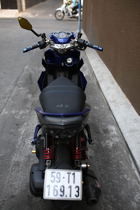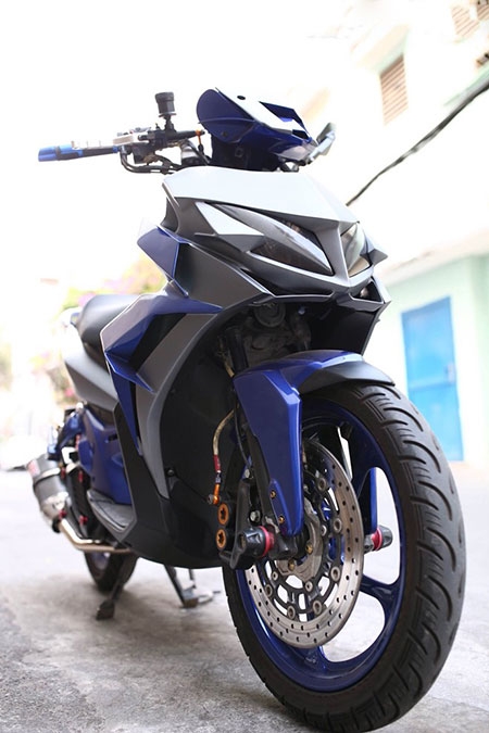 | Không chỉ thay đổi dàn vỏ ốp, chiếc Nouvo LX này còn được gắn thêm nhiều món đồ chơi khác như đĩa phanh R1 đường kính 320 mm, heo R6... |