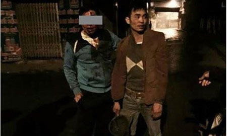 Phó trưởng ban hình sự (che mặt) khống chế 1 kẻ đầu gấu. |
