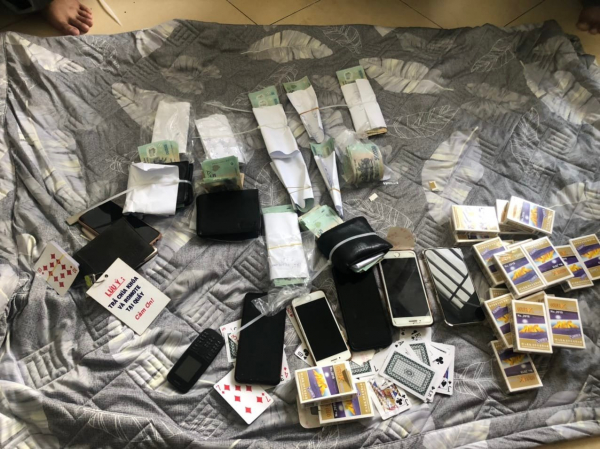 Tang vật thu giữ tại chiếu bạc hơn 54 triệu đồng, trong người các đối tượng hơn 155 triệu đồng, hàng chục bộ bài cùng nhiều vật dụng phục vụ cho việc đánh bạc.