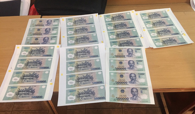 Tiến hành khám xét phương tiện và nơi ở của các đối tượng, Công an đã thu giữ lượng tiền Việt Nam giả mệnh giá 500.000 VNĐ với tổng trị giá là 14.500.000 VNĐ, cùng nhiều phương tiện, dụng cụ, nguyên vật liệu để làm tiền giả (máy tính xách tay, máy scan, máy in màu, dao rọc giấy, thước kim loại, giấy A4, sơn xịt nhanh, keo sữa...).