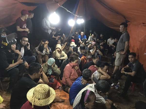 Phát hiện công an, hàng chục con bạc bỏ chạy tán loạn. Tuy nhiên, cảnh sát đã khống chế toàn bộ 41 người, thu giữ trên 200 triệu đồng và hàng chục ôtô, xe máy.