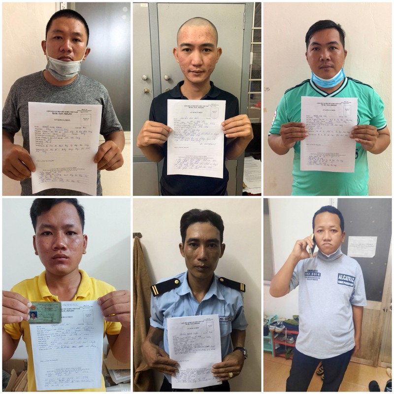 Các bị can gồm: Nguyễn Chí Hồ (25 tuổi, quê quán tỉnh Cà Mau), Nguyễn Anh Điền (24 tuổi, quê quán tỉnh Đồng Tháp), Huỳnh Thanh Tuấn (36 tuổi, quê quán tỉnh Sóc Trăng), Nguyễn Đức Toàn (29 tuổi, quê quán tỉnh Trà Vinh), Nguyễn Minh Giàu (26 tuổi) và Nguyễn Minh Hương (33 tuổi, cùng quê quán ở tỉnh Kiên Giang.