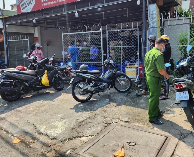 Ngày 10/3, Công an quận Tân Bình (TP HCM) đang phối hợp với các đội nghiệp vụ Công an TP HCM khám nghiệm hiện trường, điều tra nguyên nhân vụ án mạng tại quán nhậu trên địa bàn.
