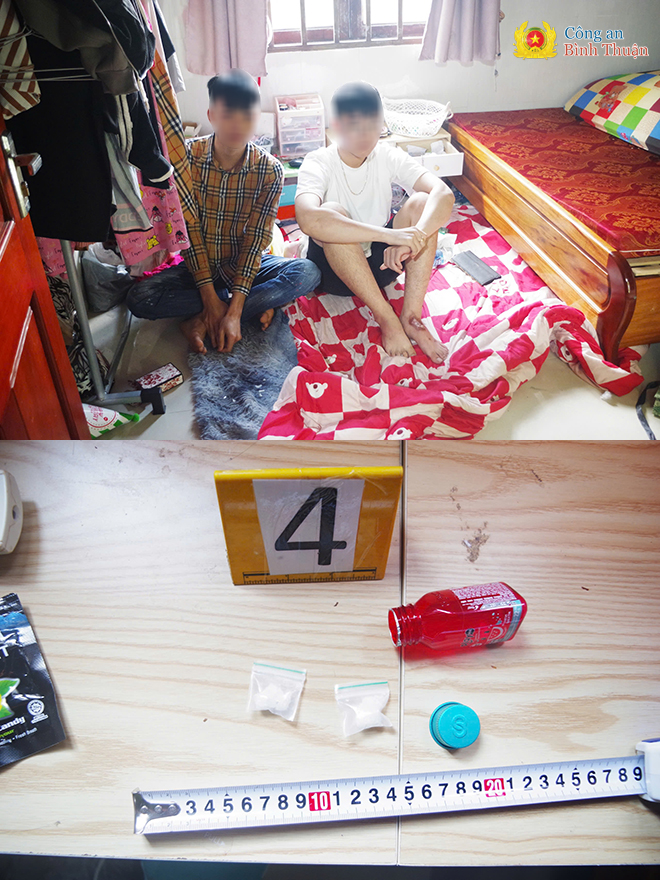 Tại phòng thứ ba của ngôi nhà, có 2 đối tượng đang ở trong phòng gồm: L.M.Q (sinh năm 2006; trú tại thị trấn Đức Tài, huyện Đức Linh); H.Đ.T (sinh năm 2005; trú tại xã Đức Hạnh, huyện Đức Linh). Tang vật thu giữ gồm 3 bịch nilon bên trong có chứa chất tinh thể màu trắng.