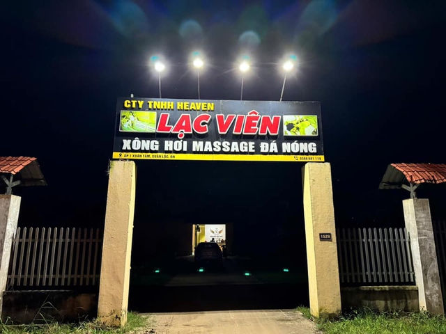 Công an tỉnh Đồng Nai cho biết, thực hiện cao điểm tấn công trấn áp tội phạm cờ bạc, mại dâm trên địa bàn, 21h20 ngày 31/10/2024, Công an huyện Xuân Lộc kiểm tra cơ sở xông hơi massage “Heaven Lạc Viên”, tại địa chỉ ấp 1, xã Xuân Tâm, huyện Xuân Lộc, do Huỳnh Thị Thùy Dung-1984, HKTT: Bình Thuận làm chủ.