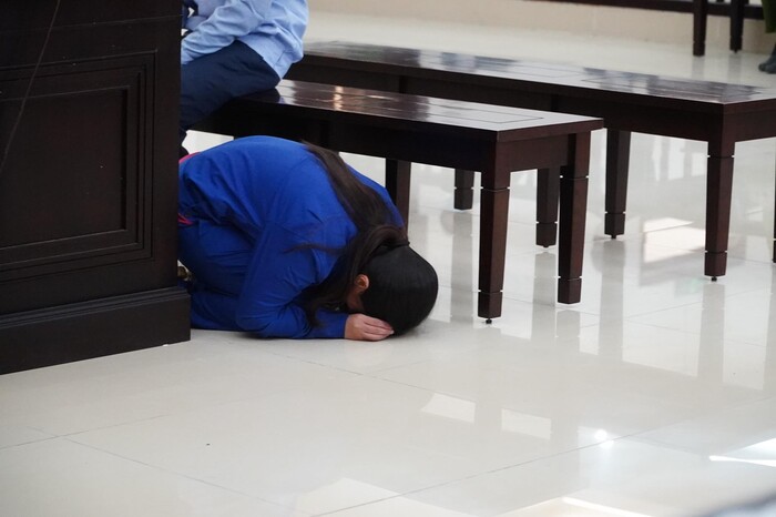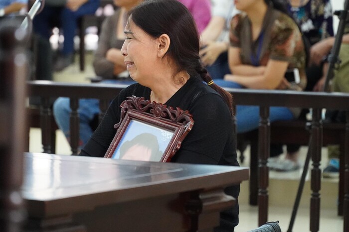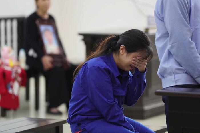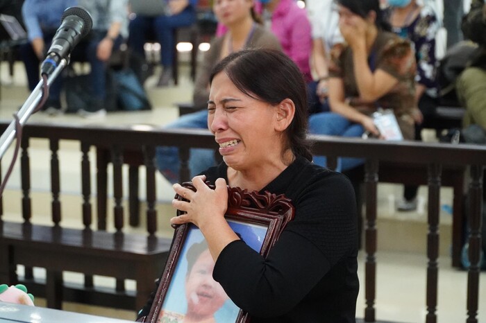 Từ khi phiên toà diễn ra, trong suốt quá trình thẩm vấn cả hai bị cáo cùng bà Vũ Thị Dự (51 tuổi, là mẹ đẻ của Lan Anh, bà ngoại của bé M.) liên tục bật khóc.