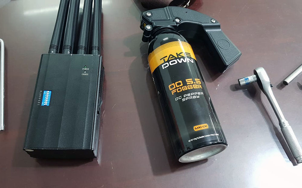Dụng cụ mà các đối tượng dùng để trộm xe, trong đó có máy phá sóng định vị