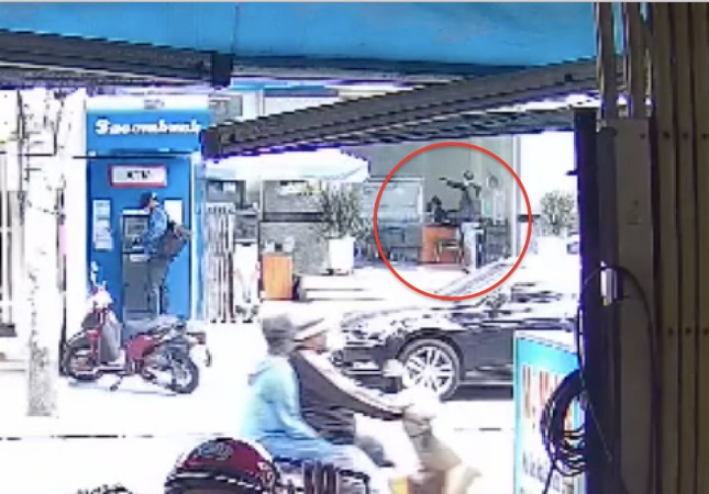 Hành vi của hai thanh niên khiến nhiều người có mặt hoảng loạn. Trong đó kẻ cầm súng đe dọa thực hiện hành vi cướp là một thanh niên đội nón, đeo khẩu trang, khoác áo màu; người còn lại đội nón, đeo khẩu trang, mặc áo trắng.