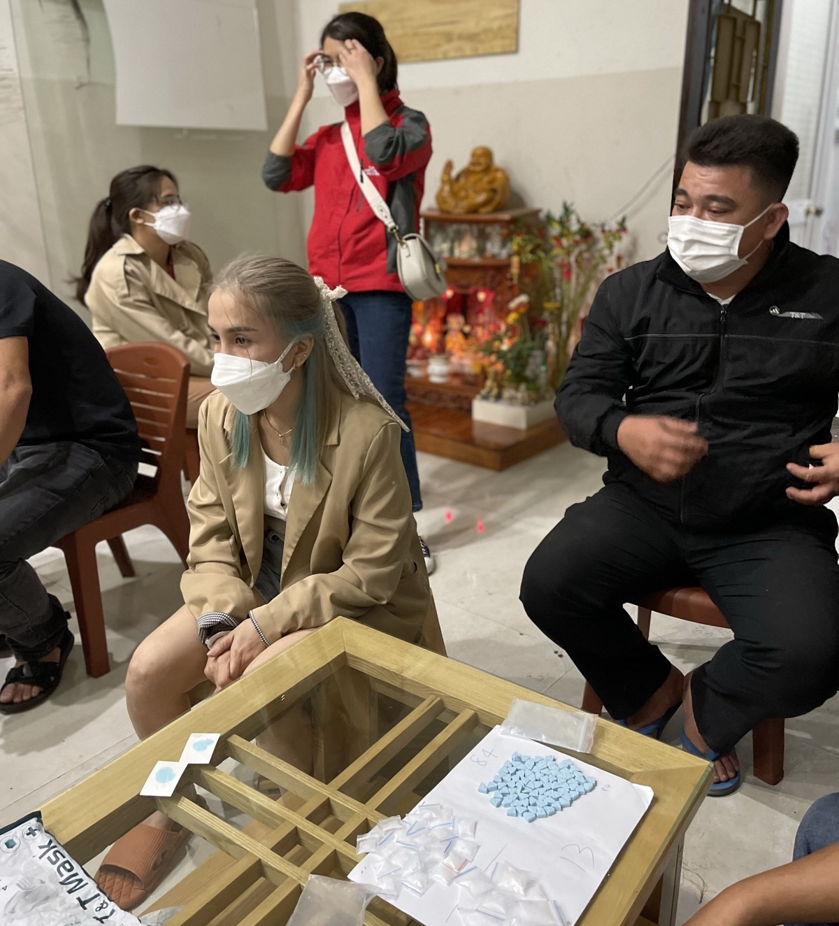 Trước đó, khoảng 20h30 ngày 28/2, cảnh sát tiến hành dừng xe ô tô mang biển số Quảng Nam, bắt quả tang Ngô Thị Tố Anh ngồi ở ghế phụ cất giữ 4 viên thuốc lắc. Tiếp tục khám xét khẩn cấp chỗ ở của nữ đối tượng tại xã Bình Nguyên, lực lượng làm nhiệm vụ phát hiện thêm 84 viên thuốc lắc và 38 gói ma túy loại ketamin cùng nhiều tang vật liên quan.