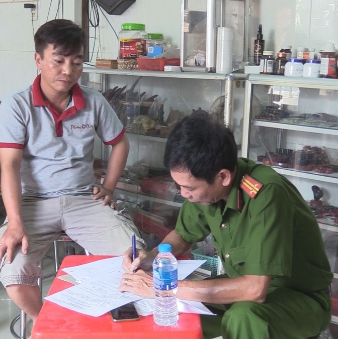 Đến ngày 12/11, Phòng Cảnh sát phòng chống tội phạm về môi trường phối hợp Công an thành phố Thuận An và Viện sinh học nhiệt đới - Viện Hàn lâm khoa học và Công nghệ Việt Nam tiến hành khám xét khẩn cấp cửa hàng của Phương tại khu phố Bình Phước A, phường Bình Chuẩn, TP Thuận An.