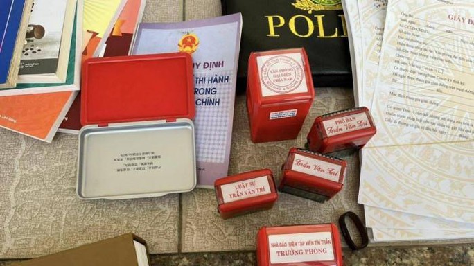 Bên cạnh đó, cơ quan công an còn thu giữ một số con dao, găng tay, kính hiển vi, nhiều giấy tờ và một số con dấu giả đứng tên Trần Văn Trí cùng nhiều trang sức như đồng hồ, nhẫn vàng…