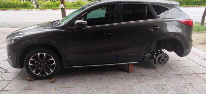 Theo đó, trong thời gian vừa qua, nhiều chủ xe trên địa bàn TP Vinh và thị xã Cửa Lò, Nghệ An khi thức dậy bàng hoàng phát hiện cả 4 bánh xe của mình đều đã bị tháo trụi. Tại vị trí những chiếc bánh xe đã “bốc hơi” chỉ còn kê lại hàng gạch.