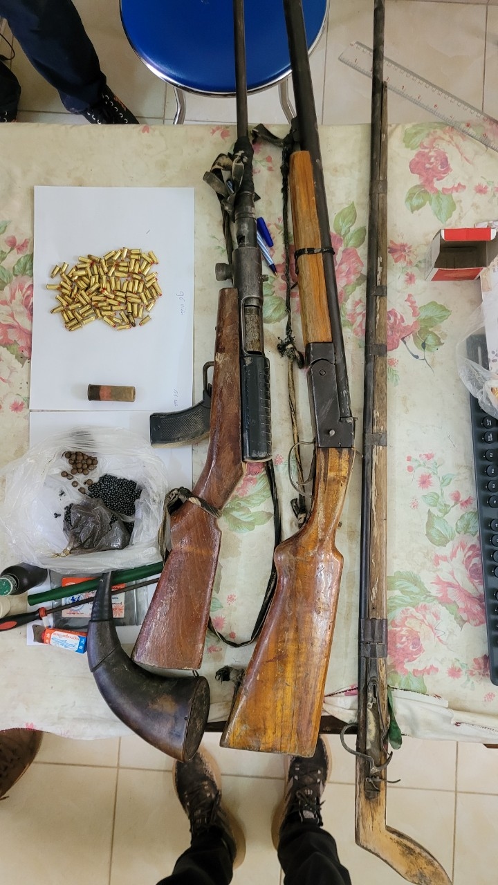 Tang vật thu giữ gồm 3 khẩu súng, trong đó có 2 khẩu đã có đạn lên nòng, 97 viên đạn súng tự chế và nhiều bi sắt, thuốc súng tự chế khác.