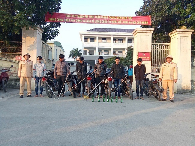 Quá trình di chuyển, các đối tượng đã phóng nhanh vượt ẩu, lạng lách đánh võng trên các tuyến đường thành phố Vinh, Cửa Lò. Căn cứ kết quả xác minh, làm rõ Công an thành phố Vinh đã thu giữ 5 phương tiện xe mô tô, 5 dao phóng lợn tự chế, 6 vỏ chai bia và một số tang vật liên quan khác.
