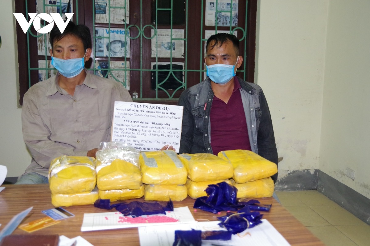 Cụ thể, vào khoảng 18h ngày 11/9, tại khu vực km số 177, Quốc lộ 12, thuộc địa phận bản Cò Chạy, xã Mường Pồn, huyện Điện Biên (tỉnh Điện Biên), tổ công tác phối hợp của hai đơn vị nói trên phát hiện 2 đối tượng nam giới di chuyển trên xe máy có biểu hiện nghi vấn. Tổ công tác đã ra hiệu lệnh dừng xe để kiểm tra, đối tượng cầm lái sau đó đã tăng ga bỏ chạy, đối tượng ngồi sau đã ôm bao tải nhảy xuống vực bên đường nhằm thoát thân, nhưng đã bị các trinh sát mật phục bủa vây khống chế.