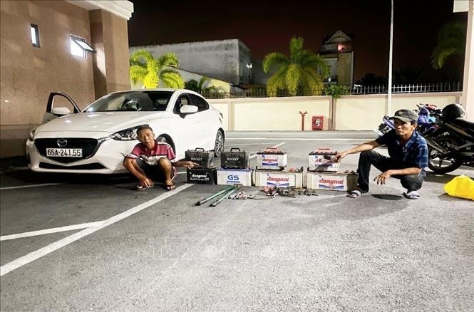Khai thác nhanh, Tâm và Hiền khai nhận vừa trộm bình ắc quy của ô tô biển kiểm soát 64C-020.69 đang đỗ ven đường. Kiểm tra xe ô tô, Tổ tuần tra phát hiện có 8 bình ắc quy các loại và các dụng cụ tháo lắp.
