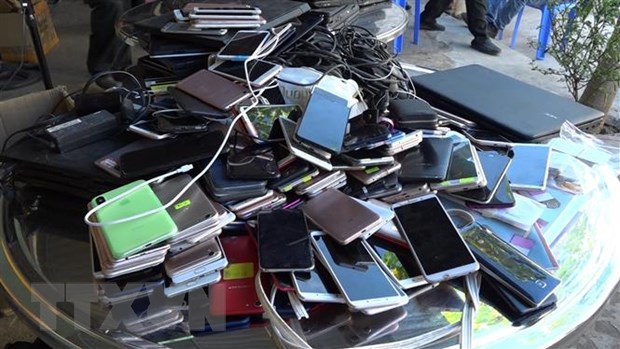Tại hiện trường, lực lượng chức năng phát hiện và thu giữ gần 300 thiết bị điện tử bao gồm máy tính bảng, máy tính xách tay, điện thoại di động, pin, chip, sim thẻ các loại….