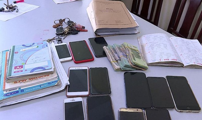 Khám xét nơi ở của các bị can, lực lượng chức năng thu giữ hơn 118 triệu đồng, 2 ôtô, 5 xe máy, 12 điện thoại di động, một bộ máy tính bàn, laptop cùng tang vật liên quan.