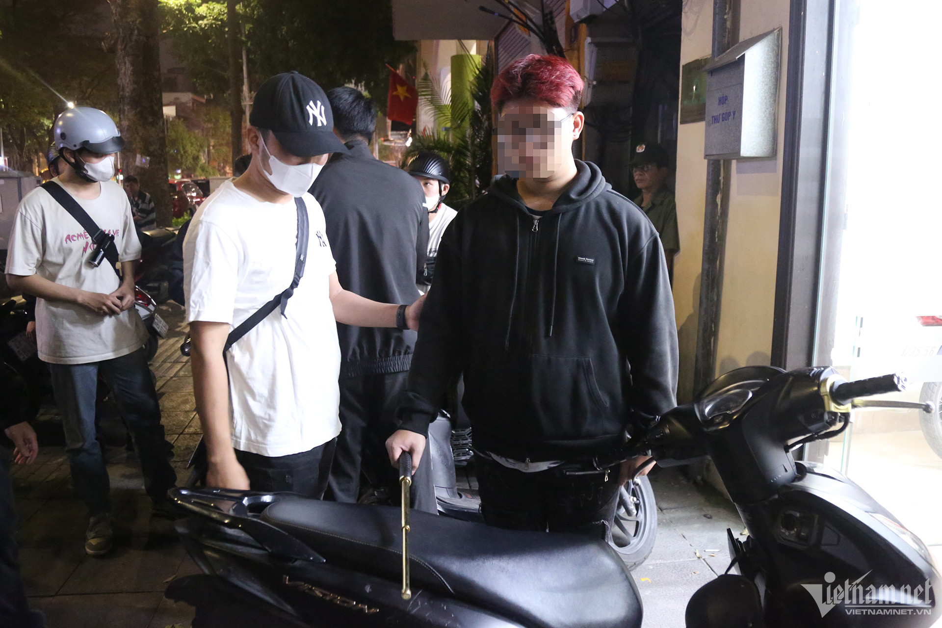 Trong đêm 30/3, tổ công tác Y14/141 cũng phát hiện N.K.H.N. (học sinh lớp 12, trú tại quận Cầu Giấy, Hà Nội) điều khiển xe máy không biển kiểm soát, không đội mũ bảo hiểm đi trên đường Trần Khánh Dư, tàng trữ gậy 3 khúc.
