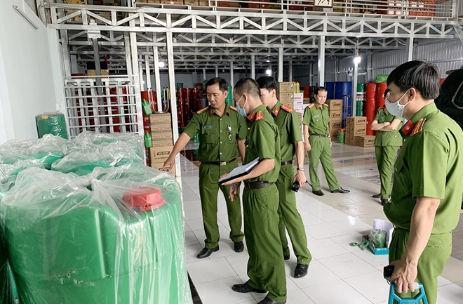 Cơ quan Công an đã phát hiện và lập biên bản tạm giữ trên 1.000 thùng, can và phi chứa chất lỏng có thể tich từ 10 lít đến trên 200 lít, trên 1.360 thùng catton bên trong có chứa nhiều chai nhựa chứa chất lỏng với nhiều nhãn hiệu nhớt khác nhau và gần 1.000 bao, thùng catton chứa phụ tùng xe mô tô (nghi là hàng giả các nhãn hiệu nhớt và xe mô tô nổi tiếng), nhiều xe mô tô, ô tô các loại cùng nhiều giấy tờ, sổ sách liên quan.