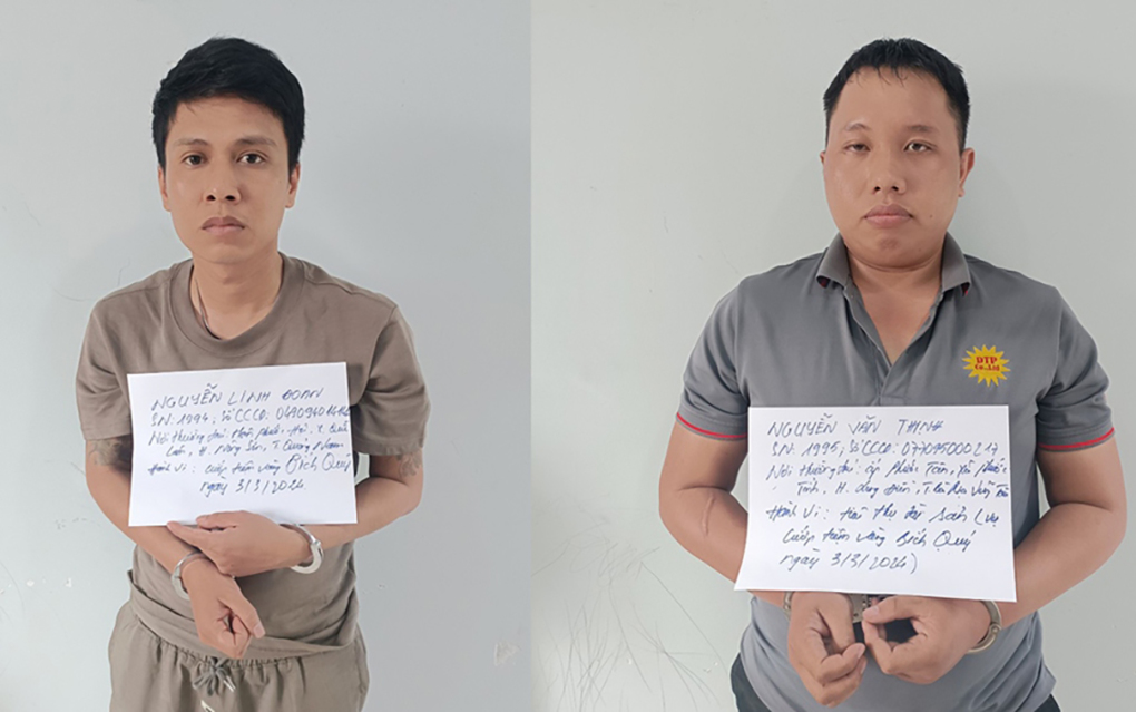 Ngày 10/3, Công an Bình Dương tạm giữ Nguyễn Linh Đoan, 30 tuổi, quê Quảng Nam và Trần Quang Triệu, 31 tuổi, quê Bình Định để điều tra hành vi Cướp tài sản.