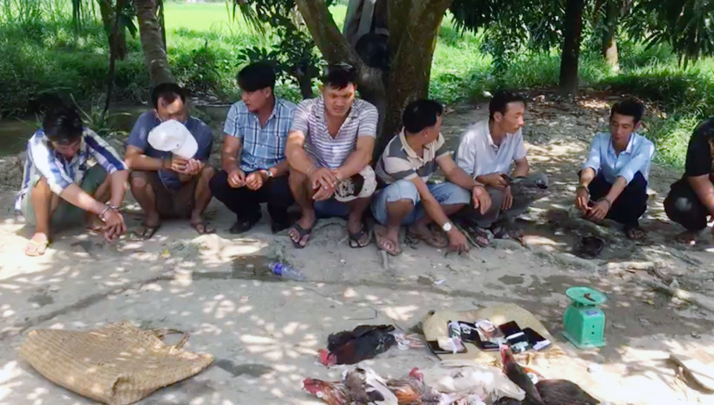14h30 cùng ngày, Đội cảnh sát trật tự Công an huyện Tam Bình bắt quả tang 12 người đang tổ chức đá gà ăn thua bằng tiền qua mạng tại nhà ông Phan Văn Phước (52 tuổi, ngụ xã Tân Lộc) thu giữ gần 25 triệu đồng, 1 laptop, 1 ti vi cùng nhiều tang vật có liên quan.