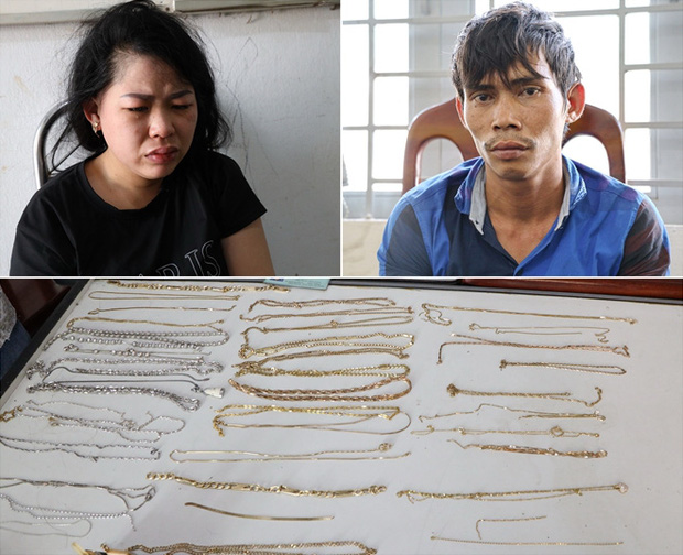 Qua khám xét, Công an thu giữ tang vật gồm: 3 điện thoại di động, 7 mặt dây chuyền kim loại màu vàng, 3 mặt dây chuyền kim loại màu trắng, 30 sợi dây chuyền kim loại màu vàng cùng 16 sợi dây chuyền kim loại màu trắng, đều bị đứt… Tổng cộng các kim loại màu vàng và trắng trên có trọng lượng khoảng 8 lượng 1 chỉ.