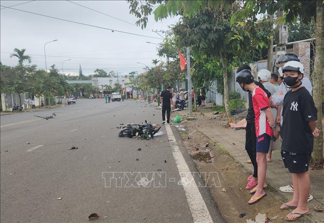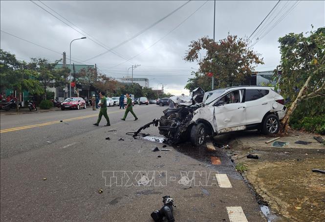 Tại hiện trường, nhiều mảnh vỡ của xe mô tô và ô tô con vương vãi khắp nơi. Ngoài ra, chiếc xe mô tô bị bốc cháy chỉ còn lại khung sắt; phần đầu chiếc ô tô cũng bị vỡ nát, bên trong nhiều túi khí đã bung ra.