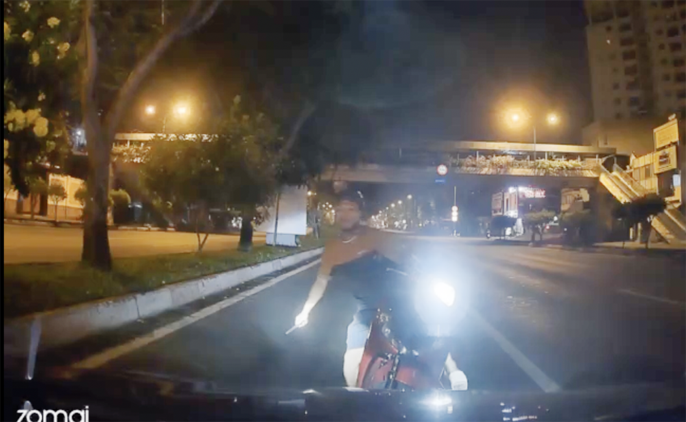 Lúc này có một ô tô lưu thông trên đường Phạm Văn Đồng, hướng từ sân bay Tân Sơn Nhất đi quận Bình Thạnh. Khi đối diện xe gắn máy đi ngược chiều, tài xế ô tô đã dừng xe.