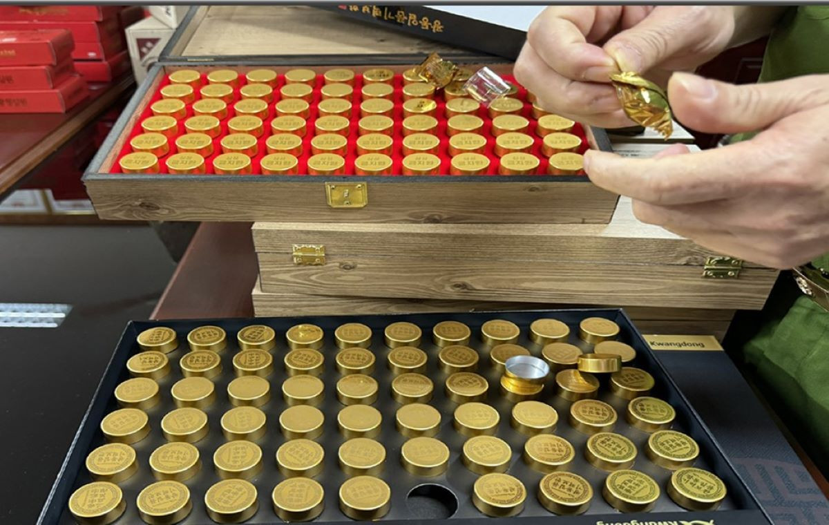 Qua khám xét, lực lượng công an thu giữ nhiều sản phẩm và nguyên liệu để sản xuất các loại hàng giả nhãn hiệu nổi tiếng gồm: Hơn 4.000 hộp an cung viên hoàn thành phẩm (loại hộp 10 viên), giá trị hàng hóa tương đương 10 tỷ đồng; 100 hộp an cung ngưu hoàng hoàn (loại 60 viên/hộp).