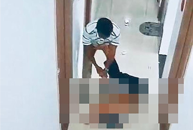 Có một vài người mở cửa phòng định can ngăn thì người đàn ông chỉ chỏ hăm dọa nên họ đóng cửa lại.